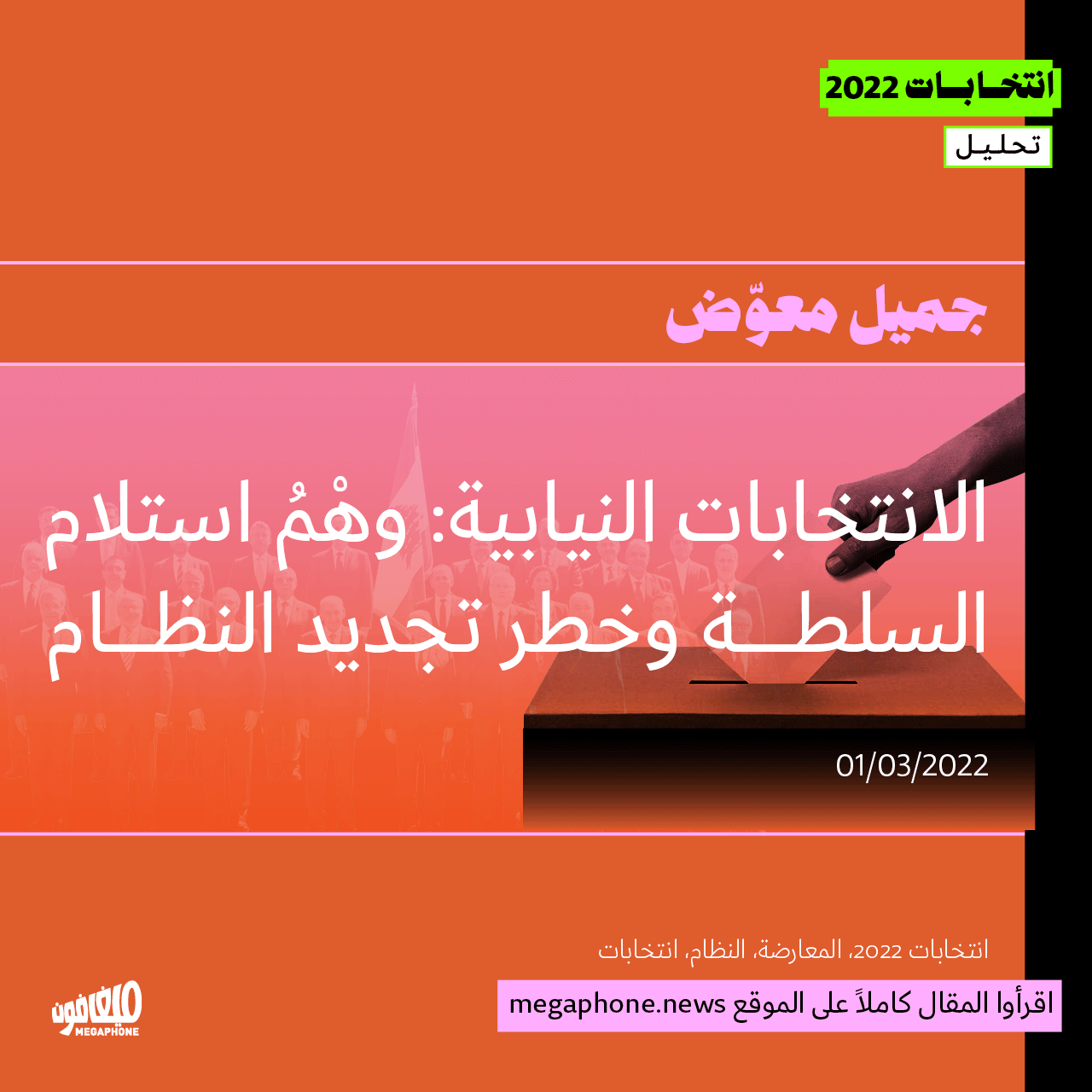 ففي قراءة سريعة لقوى الانتخابات (إن من الطبقة السياسية او من مجموعات الاعتراض) نرى حالياً أنّ معظم (أو أكثريّة) مجموعات الاعتراض هي في موقع الهجوم على المنظومة، بينما يقبع النظام في موقع «الصامت» إلى حين إطلالته دفاعاً عن نفسه. ستكون الإطلالة هذه ذات بُعد وجودي، وقد بدأها حزب الله من خلال إظهار الاستحقاق الانتخابي بصفته «حرب تموز» سياسية، وسيكمّلها الآخرون، كلٌّ بأدواته وخطاباته الهوياتية.