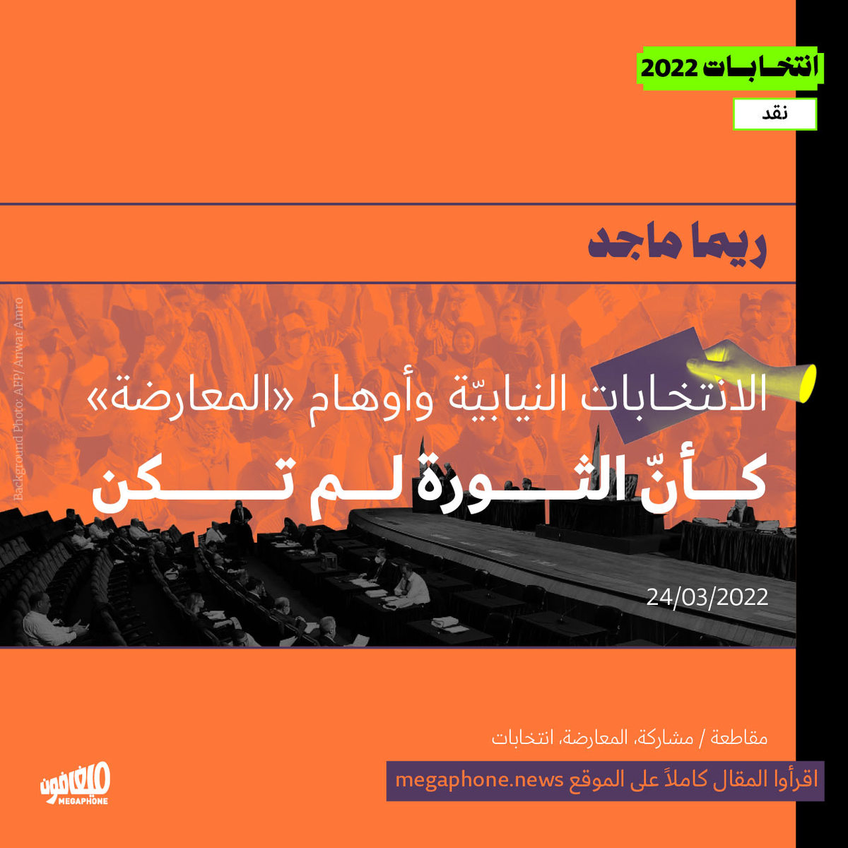 نجد أنفسنا اليوم أمام مشهد سريالي، تتحوّل فيه «الثورة» إلى مرشّحين لمقاعد داخل النظام العفن الذي قامت ضده. وتزداد سريالية المشهد عندما نرى كيف وافق هؤلاء المرشحون على لعبة النظام بكل تفاصيلها وشروطها دون أي معارضة أو معركة حقيقية من أجل نظام انتخابي مختلف.