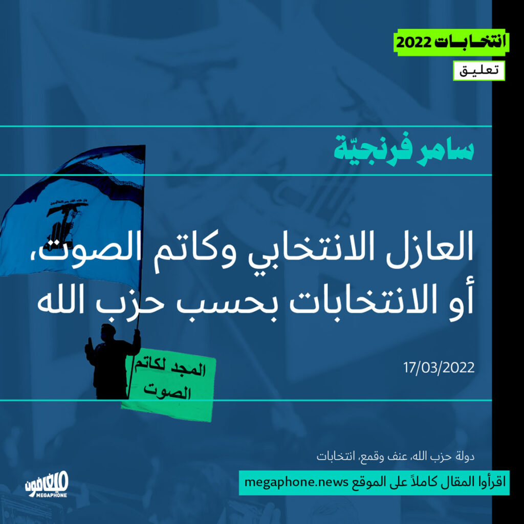 فالحزب ليس من محبّي العازل الانتخابي، هو من روّاد كاتم الصوت. وقد شَبَّهَ الانتخابات القادمة، لمن يريد الاعتراض عليه، بحرب تموز جديدة. فاحتكار تمثيل الطائفة الشيعية كان ثمنه دماً، ولن يقبل الحزب باختراقه من خلال أصوات ناخبين أو من خلال رياضيات الحاصل الانتخابي.