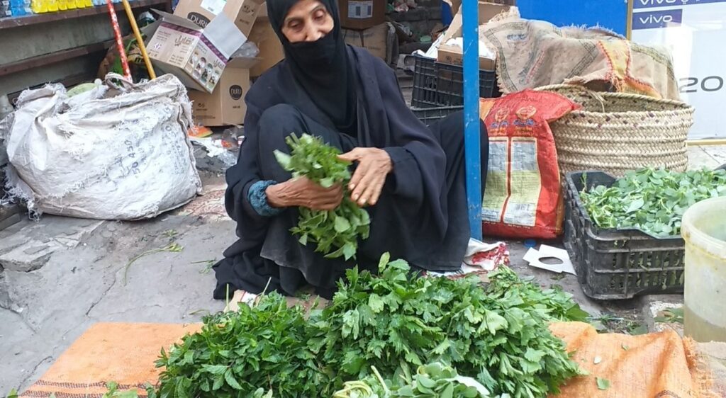 لا تعرف أم فلاح عمرها بالضبط، ربما صارت على حواف السبعين، لكن جسمها الرقيق مازال قادراً على افتراش قطعة كارتونية إلى جانب الطريق في سوق الصفاة في مدينة البصرة حيث تعرض بضاعتها البسيطة من أضمومات النعناع والمقدونس الطازجة.