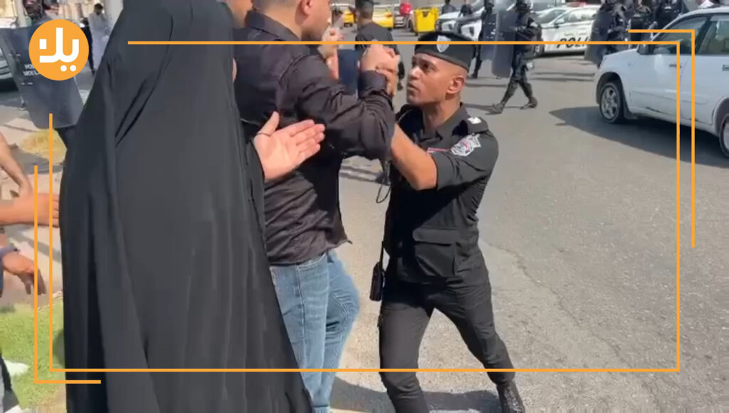 Members of the riot police attack young demonstrators in Basra.