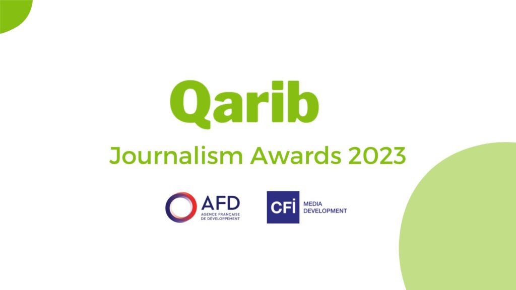 [vc_row][vc_column width=”1/1″][vc_row_inner][vc_column_inner width=”1/1″][vc_column_text css=”%7B%22default%22%3A%7B%22font-weight%22%3A%22700%22%2C%22animation-name%22%3A%22afl%22%7D%7D”]No longer accepting applications[/vc_column_text][us_separator size=”small”][vc_column_text css=”%7B%22default%22%3A%7B%22animation-name%22%3A%22afl%22%7D%7D”]The Qarib Journalism Awards aim to recognize and promote journalism that amplifies underrepresented voices and topics. The awards prioritize the coverage of women, marginalized groups and environmental issues while maintaining the highest ethical and journalistic standards. This includes challenging stereotypes about the role of female journalists. Women continue to be underrepresented in political, security, and economic reporting, and thus their perspectives on these issues relevant to society as a whole. In addition, the awards aim to elevate the voices of other socioeconomically, religiously and ethnically marginalized groups. Climate change as well as environmental issues in general that affect all members of Middle Eastern society, are also not sufficiently covered despite their relevance. To help improve this and honor those journalists from Iraq, Palestine, Jordan and Lebanon who cover these topics, we are launching the 2023 Qarib Journalism Awards.[/vc_column_text][/vc_column_inner][/vc_row_inner][us_separator size=”small”][vc_row_inner][vc_column_inner width=”1/1″][us_iconbox icon=”fal|chevron-circle-right” link=”%7B%22url%22%3A%22%22%7D” iconpos=”left” alignment=”left” css=”%7B%22default%22%3A%7B%22text-align%22%3A%22left%22%2C%22font-size%22%3A%2228px%22%2C%22font-weight%22%3A%22700%22%2C%22animation-name%22%3A%22afl%22%7D%7D”]The categories:[/us_iconbox][us_separator size=”small”][vc_column_text css=”%7B%22default%22%3A%7B%22animation-name%22%3A%22afb%22%7D%7D”]