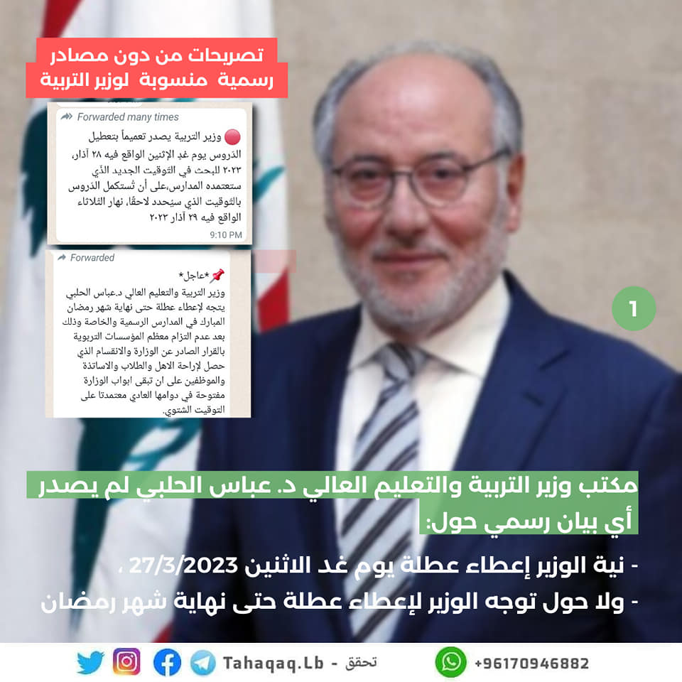 🔴 تصريحات من دون مصادر رسمية منسوبة لوزير التربية، ووزير التربية يصرّح “أترك للمسؤولين عن المدارس والمهنيات والجامعات… Posted by تحقَّق 360 on Sunday, March 26, 2023