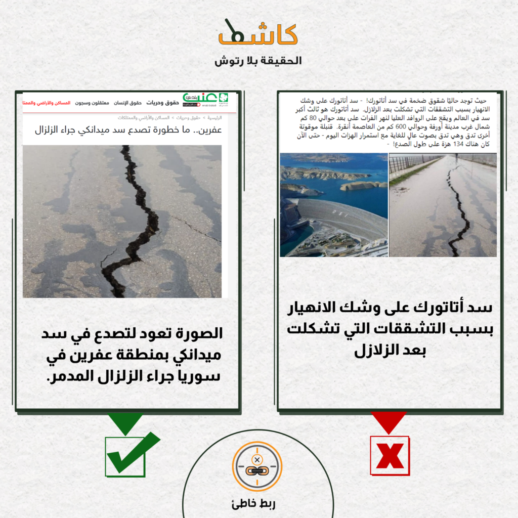 The circulating picture is of a crack in the Maidanki Dam in Syria, not of the Ataturk Dam in Türkiye.
