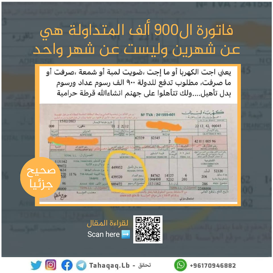 🔴 فاتورة كهرباء ال900 ألف المتداولة هي عن شهرين وليست عن شهر واحد. ________________________________ ▪️تداول مستخدمو… Posted by تحقَّق 360 on Monday, February 27, 2023