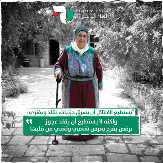 The post showcases the story of Nadia Hassan Mustafa, who worked throughout her life to protect Palestinian heritage and identity
