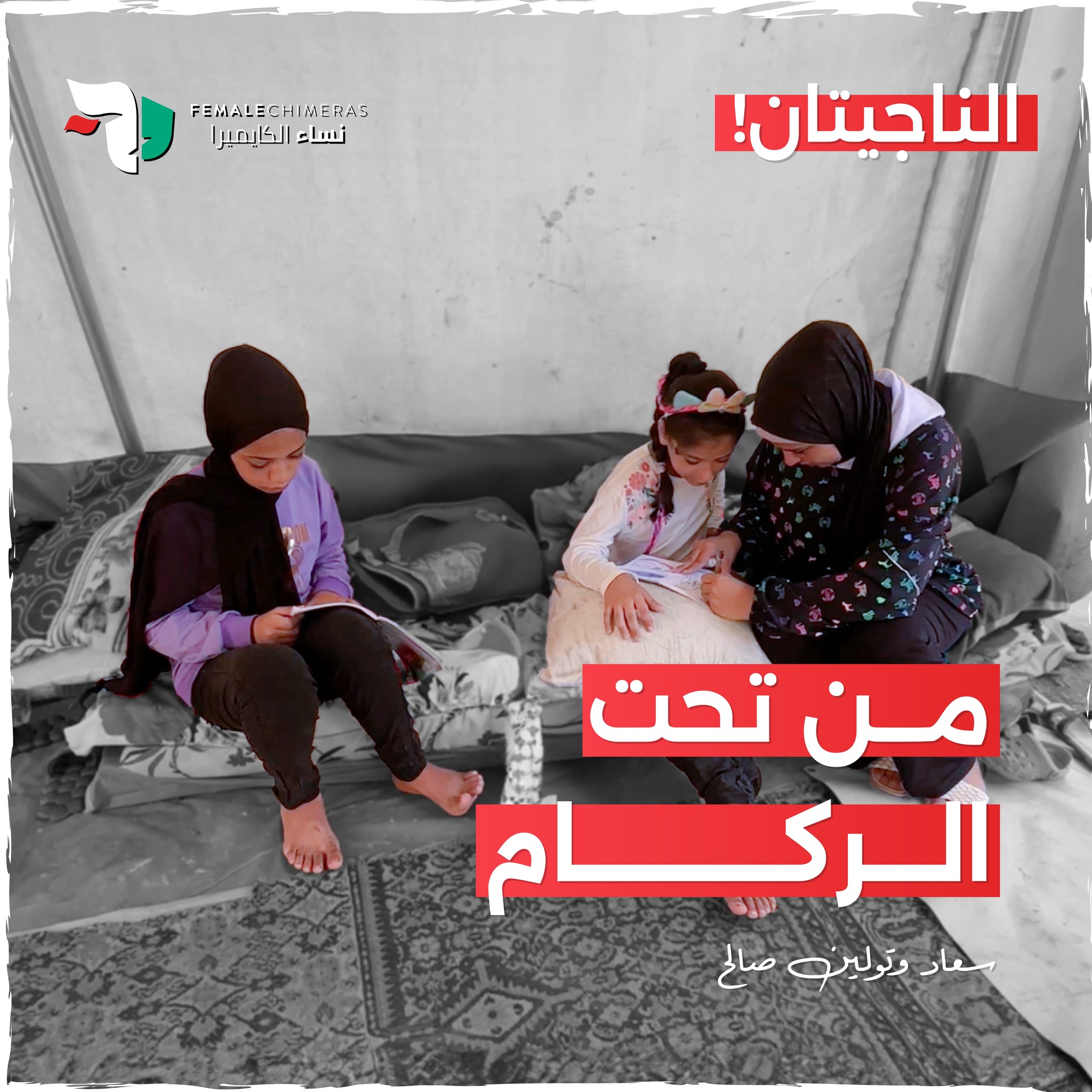 The poster tells the story of two sisters who spent 5 hours trapped under the rubble