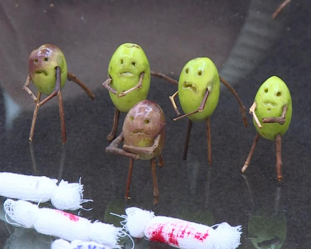حبات الزيتون تتحول الى لوحات فنية تعكس الواقع الفلسطيني بايدي الفنان نضال اسمر
