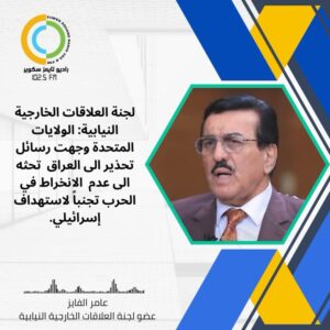 لجنة العلاقات الخارجية النيابية: الولايات المتحدة وجهت رسائل تحذير الى العراق تحثه الى عدم الانخراط في الحــ.رب تجنباً لاستهداف إســ.،رائيلي